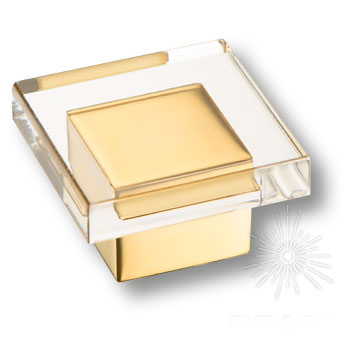 Ручка кнопка 15.383.40.19, материал Оргстекло Замак, отделка Золото Стекло, 40*40 мм