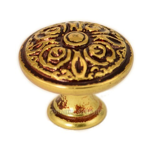 Ручка кнопка 24850.03001.54, материал Замак, отделка Французское золото, d=30 мм