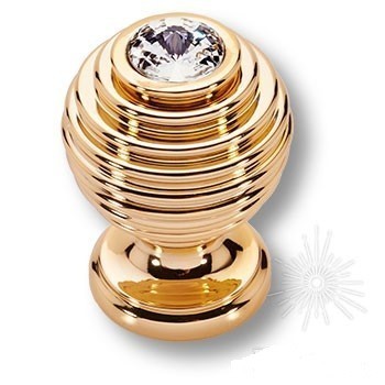 Ручка кнопка 200206PB024OZ, материал Латунь, отделка Золото Кристаллы Swarovski, d=24 мм